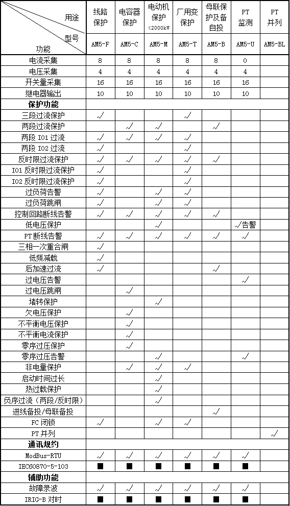 AM系列微機保護測控裝置集保護、測量、控制于一體,適用于35kV及以下電壓等級的用戶終端變電站(所),可實現用戶變電站的保護和測控。