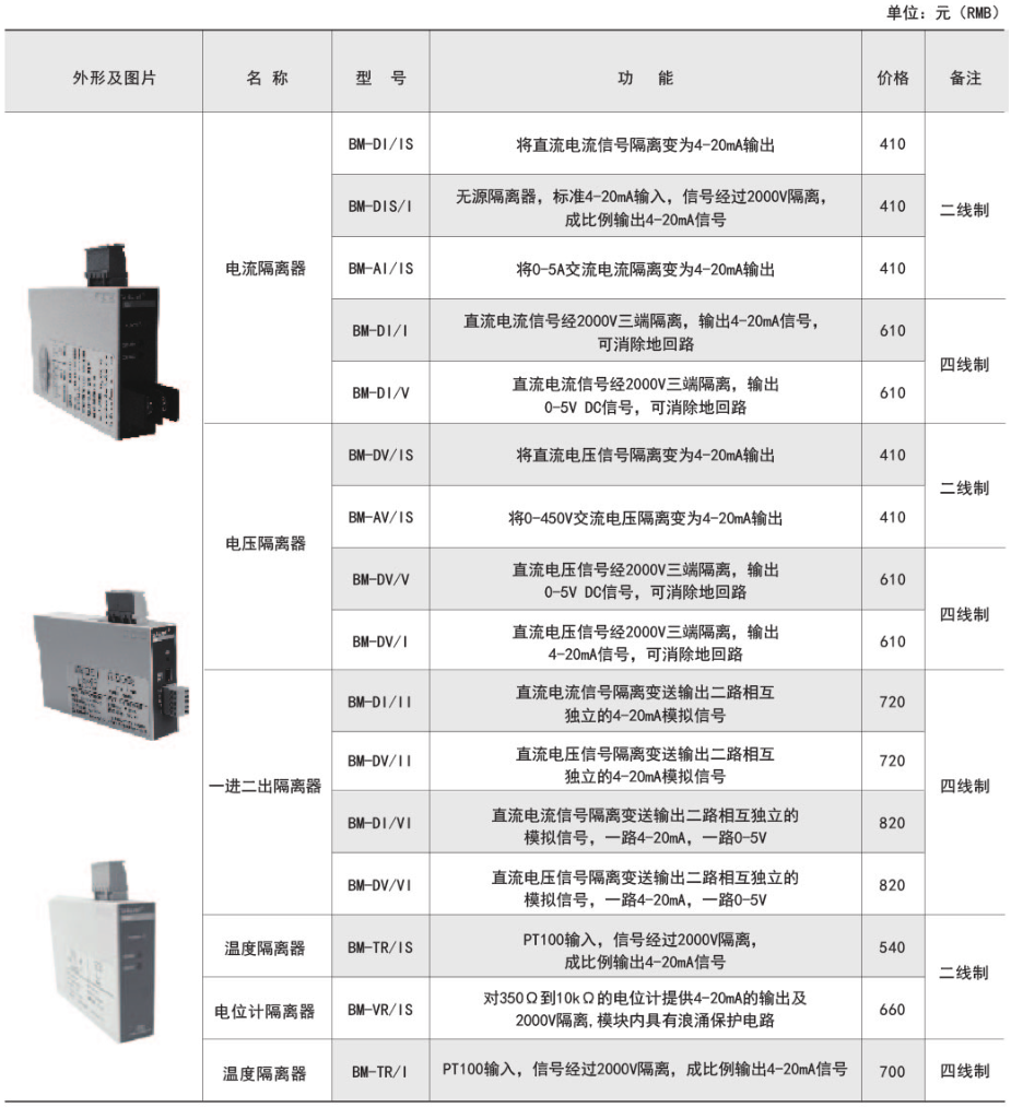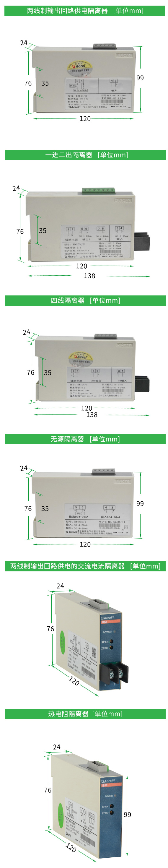 BM系列模擬信號隔離器可以對電流、電壓等電量參數(shù)或溫度、電阻等非電量參數(shù)進行高速精確測量,經(jīng)隔離轉(zhuǎn)換成標準的模擬信號輸出。既可直接與指針表、數(shù)顯表相接,也可以與自控儀表(如PLC)、各種A/D轉(zhuǎn)換器以及計算機系統(tǒng)配接。
