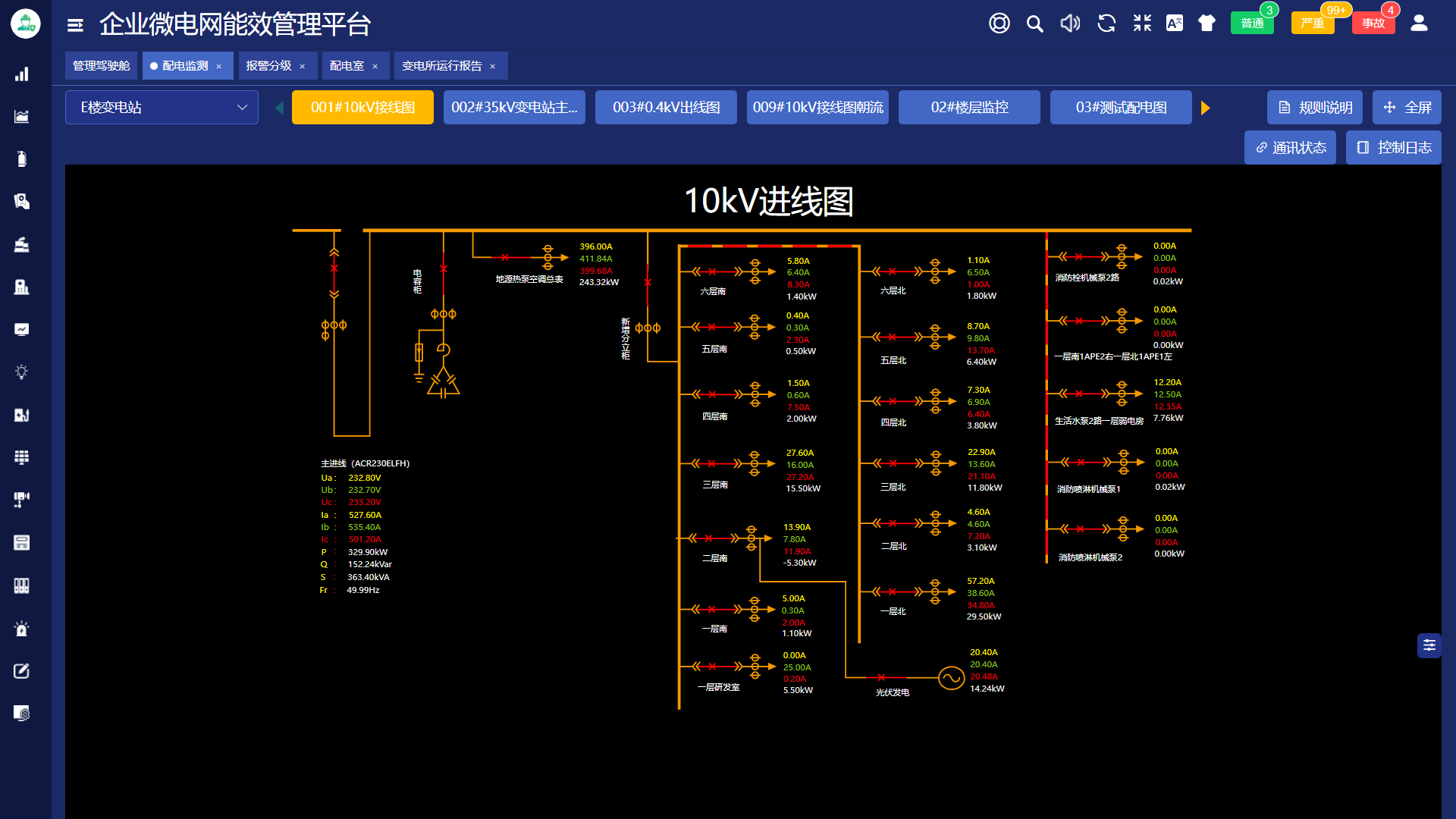 本項目共計7臺變壓器,21臺高壓,共有91個出線回路。安科瑞為該項目提供Acrel EMS企業微電網系統。包含一套Acrel EMS電力監控軟件,91臺AEM96/CFK多功能儀表,7臺AM5SE系列綜保以及2臺AM5SE-K公用測控裝置。