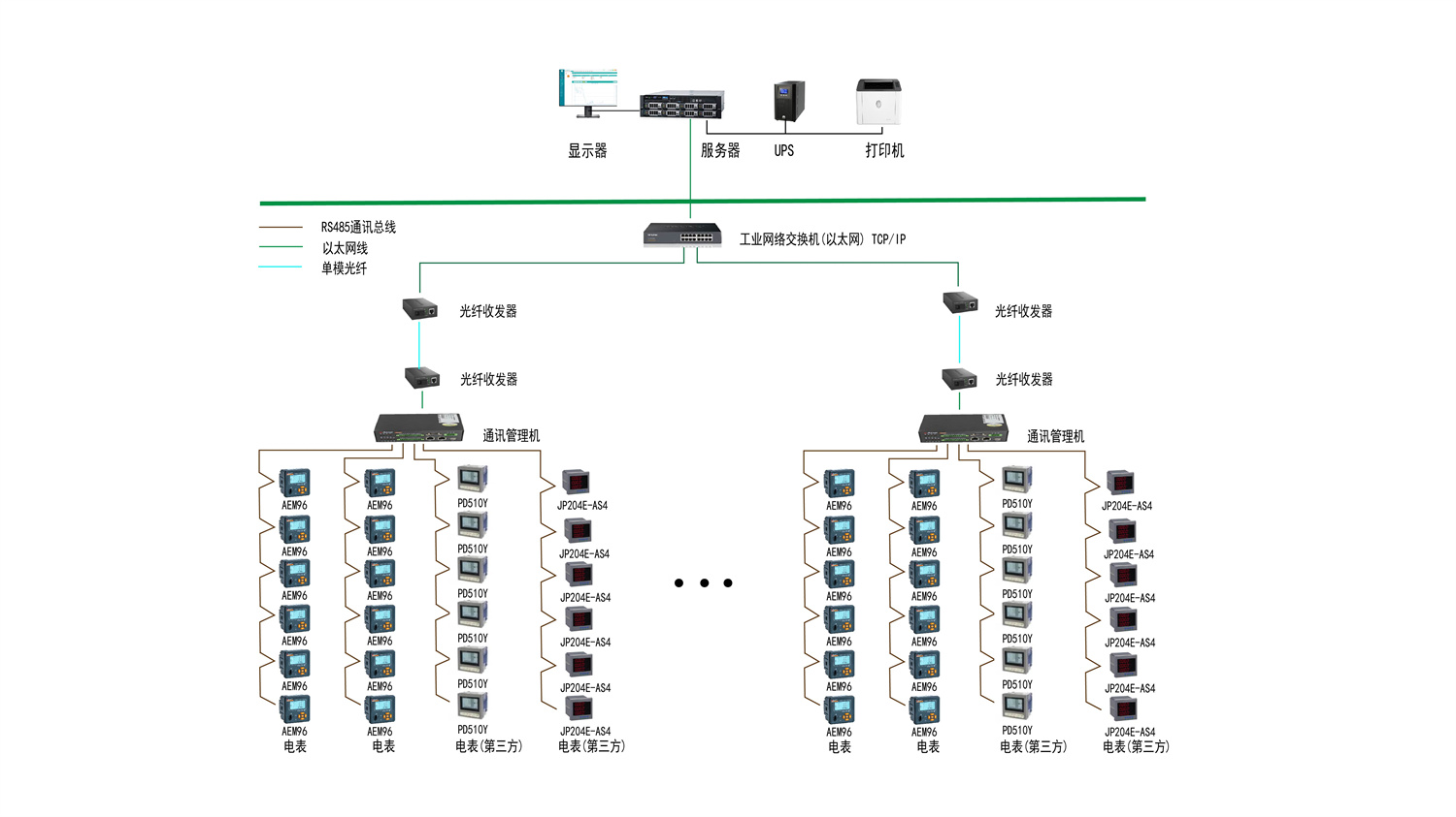 本項(xiàng)目電壓等級(jí)包含35kV、10kV及04kV,共安裝628只多功能數(shù)顯儀表,14只溫控儀。實(shí)現(xiàn)各回路及設(shè)備實(shí)時(shí)在線監(jiān)測(cè)、故障報(bào)警、用能統(tǒng)計(jì)、能效分析等功能。