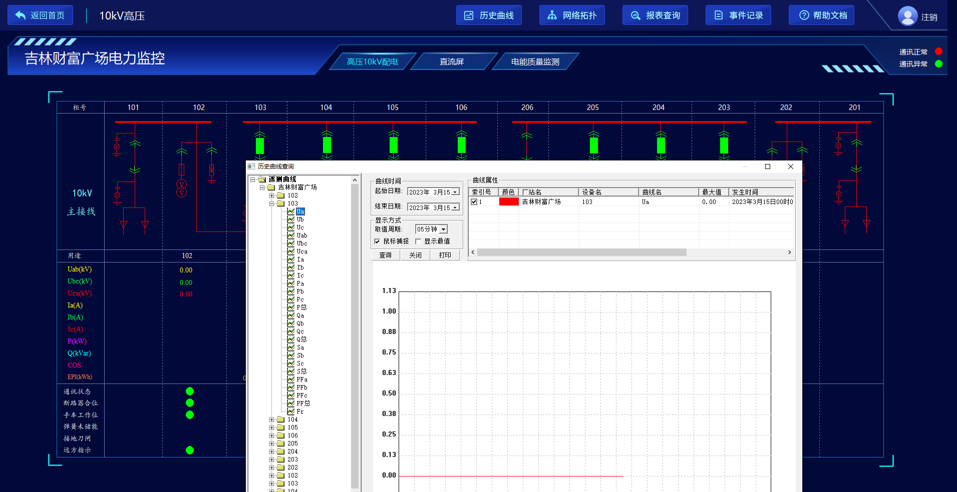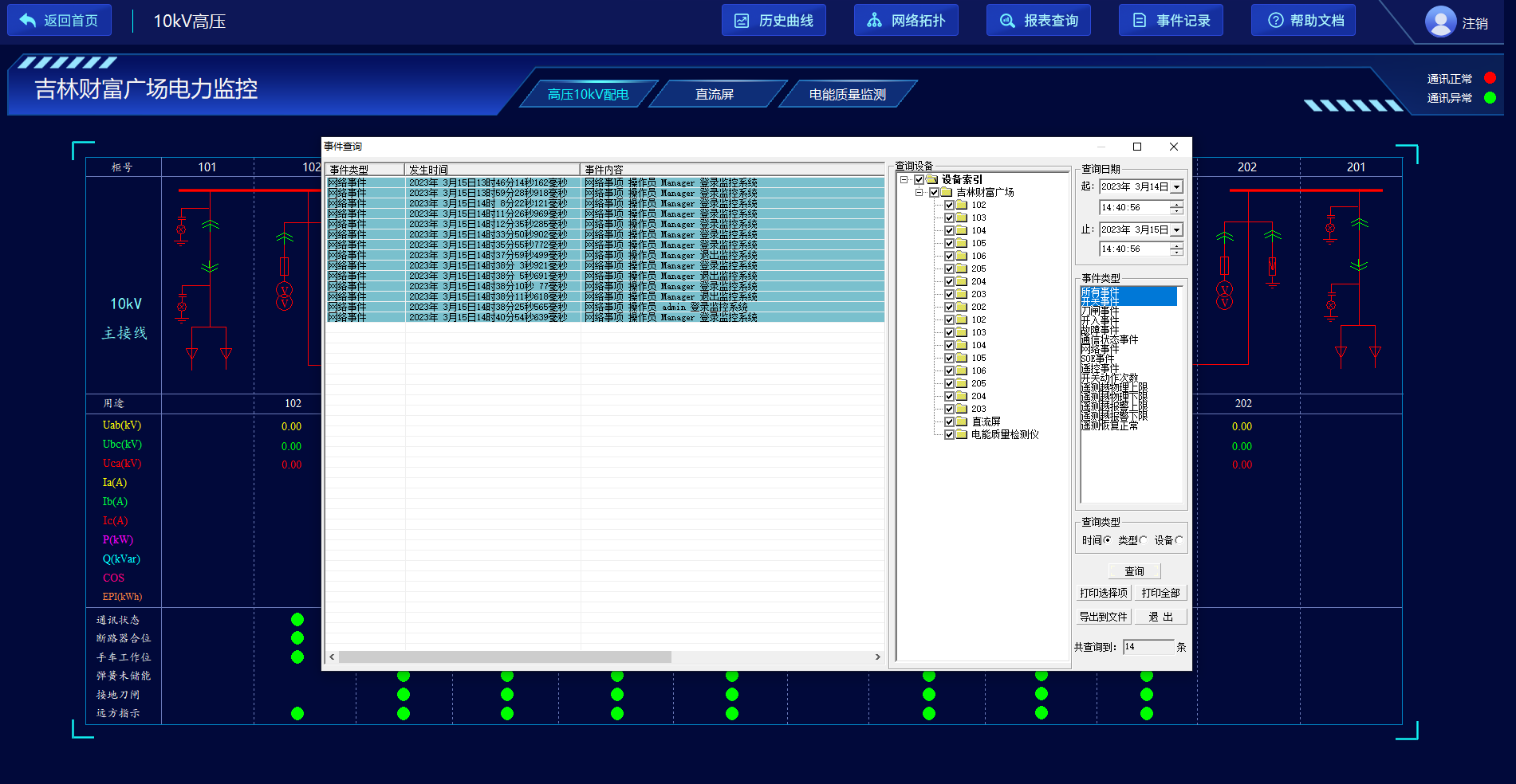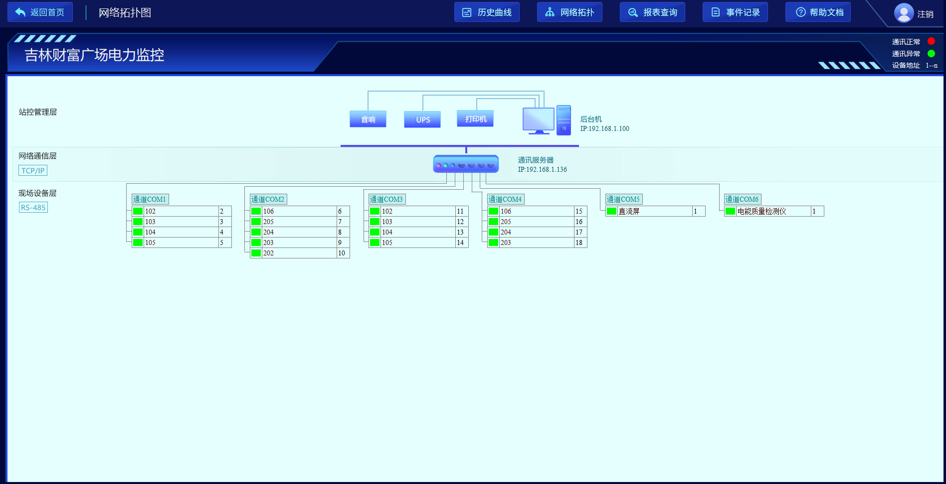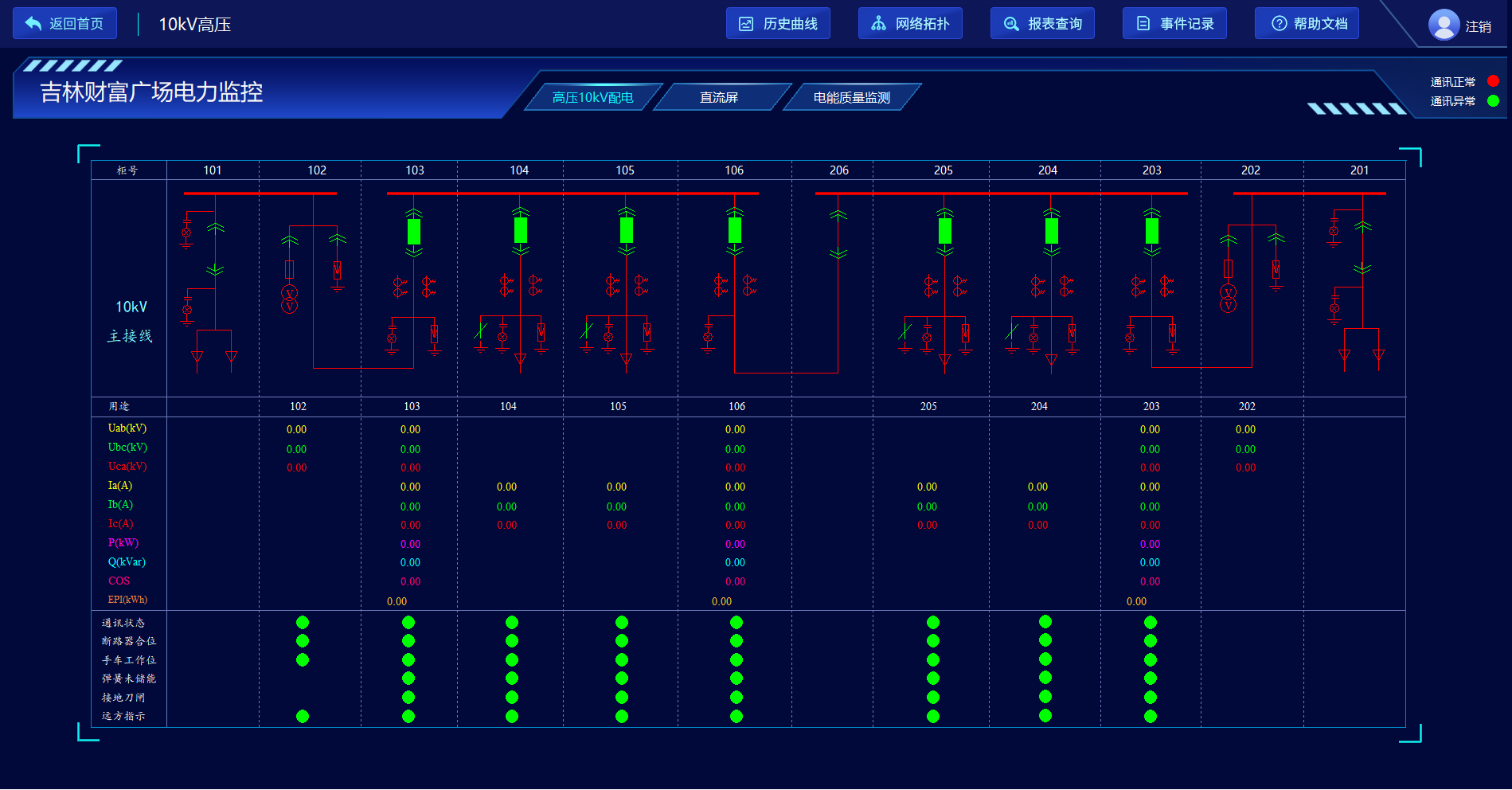 吉林財富購物廣場1個高壓配電室采集8臺安科瑞AM5微機(jī)保護(hù);7臺安科瑞AMC96-E4微機(jī)保護(hù)。