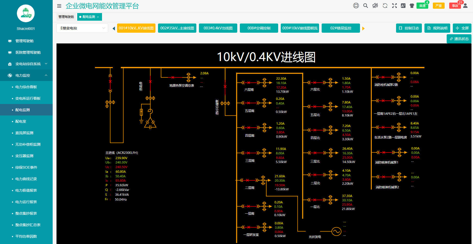 項目包括:動力中心全場中心變配所(ET1),包裝物流中心變配所(ET2),包裝車間變配電室1(ET3),包裝車間變配電室2(ET4),成品物流中心變配電室(ET5),變配電室(ET6),地下室變配電室(ET7),采集這7個配電房的微機保護、儀表、溫控儀、UPS、直流屏。