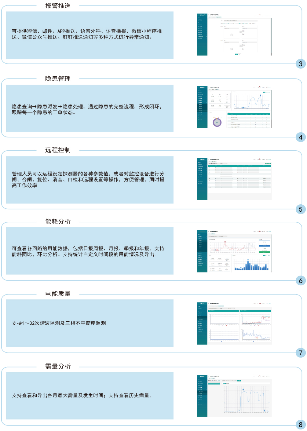 安科瑞AcrelCloud-6000安全用電管理云平臺是針對我國當前電氣火災事故頻發而研發的一套電氣火災預警和預防管理系統。該系統是基于移動互聯網、云計算技術,通過物聯網傳感終端,將辦公建筑、學校、醫院、工廠、體育場館、賓館、福利院等人員密集場所的電氣安全數據,實時傳輸至安全用電管理服務器,為用戶提供不間斷的數據跟蹤、統計分析和安全監管。平臺將發現的各種安全隱患信息及時告警提醒,并推送給相關人員,以便及早發現和消除隱患,真正做到防患于未然。