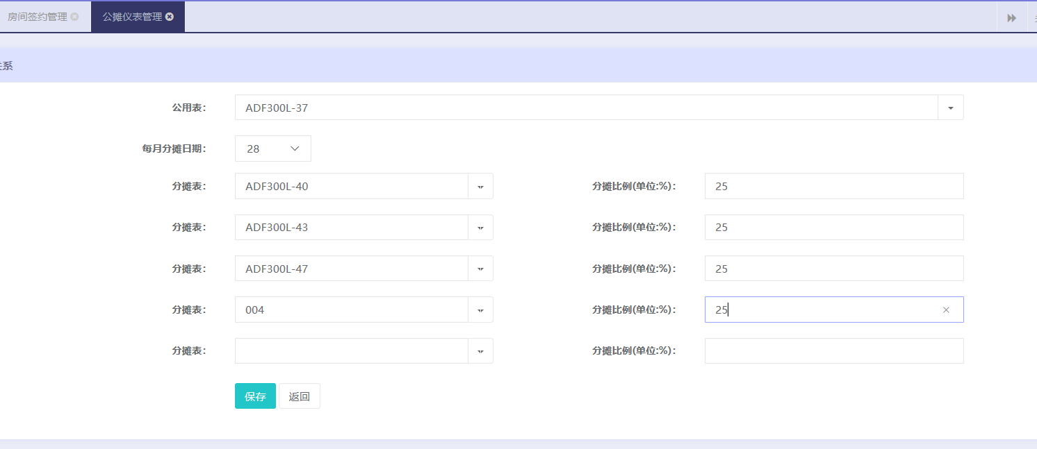 指定某塊表為主表,然后分配關(guān)聯(lián)子表,系統(tǒng)每個月自動將主表的用電按比例換算成電費從子表中扣除,這樣可以剩余人工統(tǒng)計的麻煩。