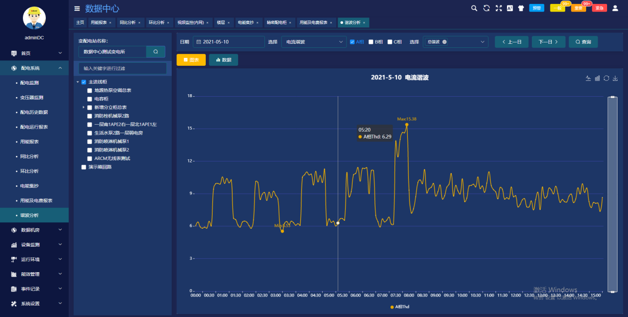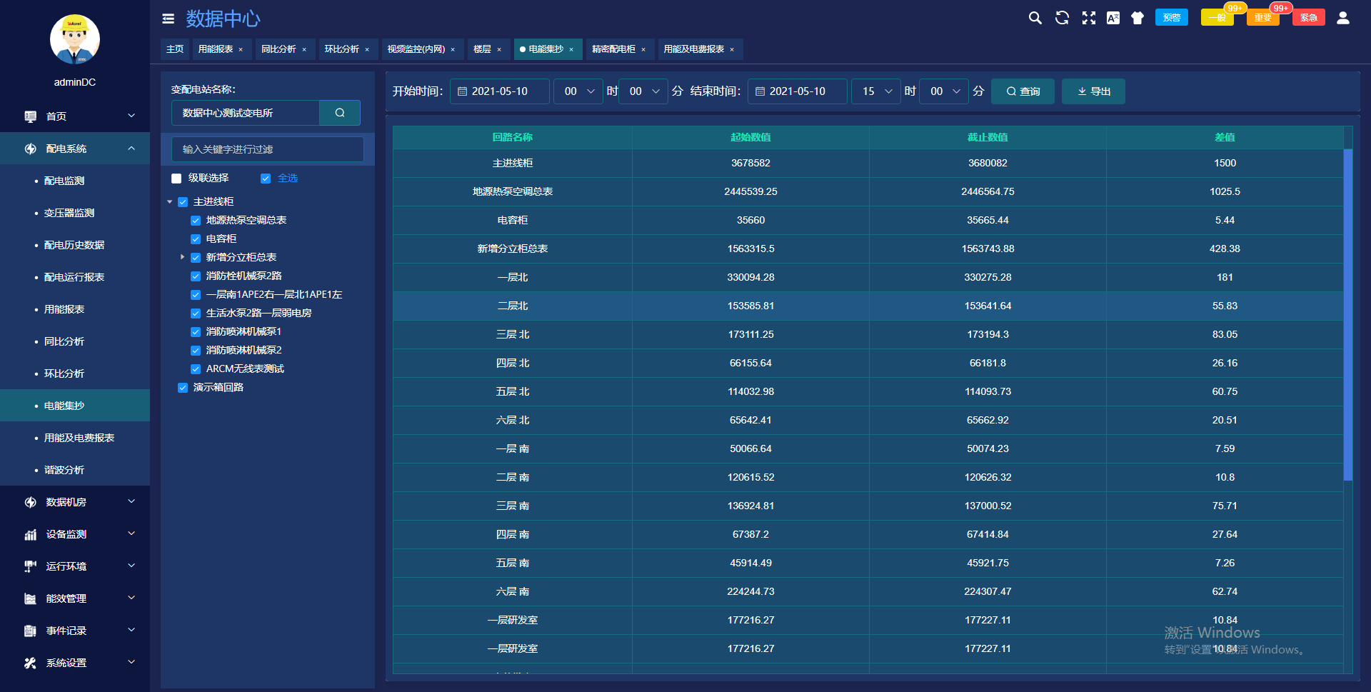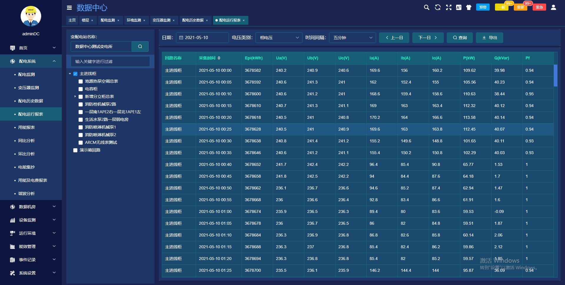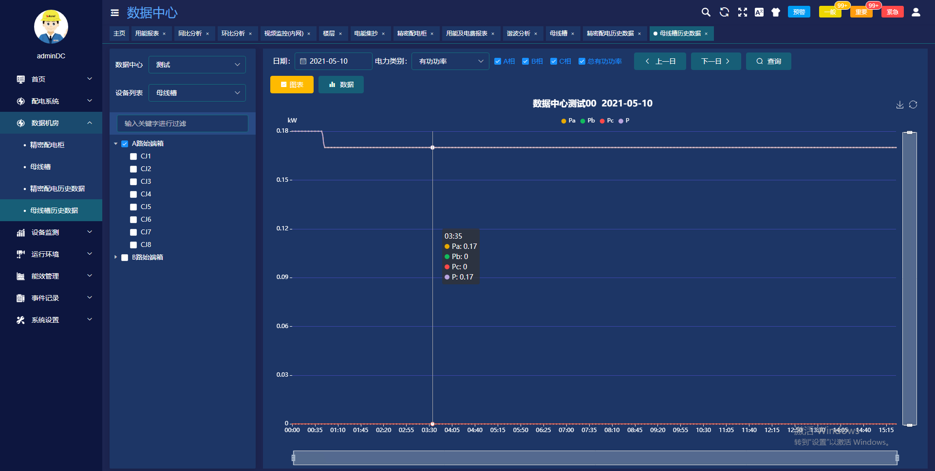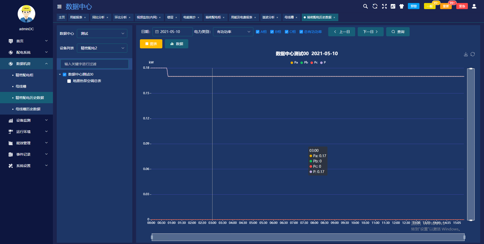 本頁面顯示精密配電設(shè)備下所有分支回路的電力參數(shù),支持歷史數(shù)據(jù)的查詢。如
