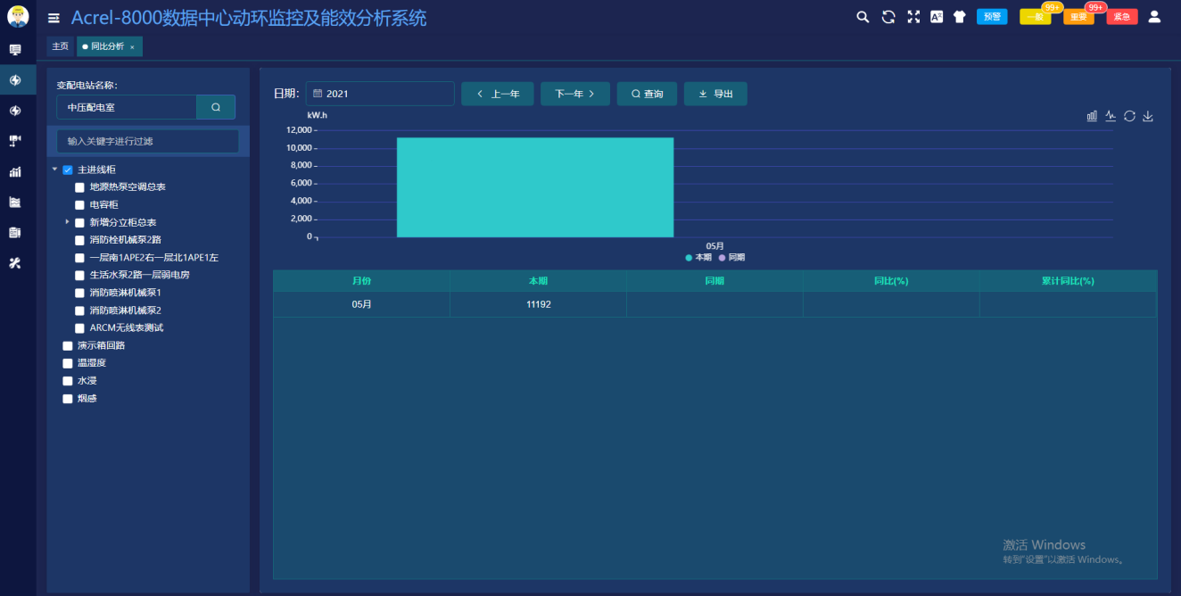 顯示各個(gè)用電回路同期用能情況。顯示增長或者下降比例。