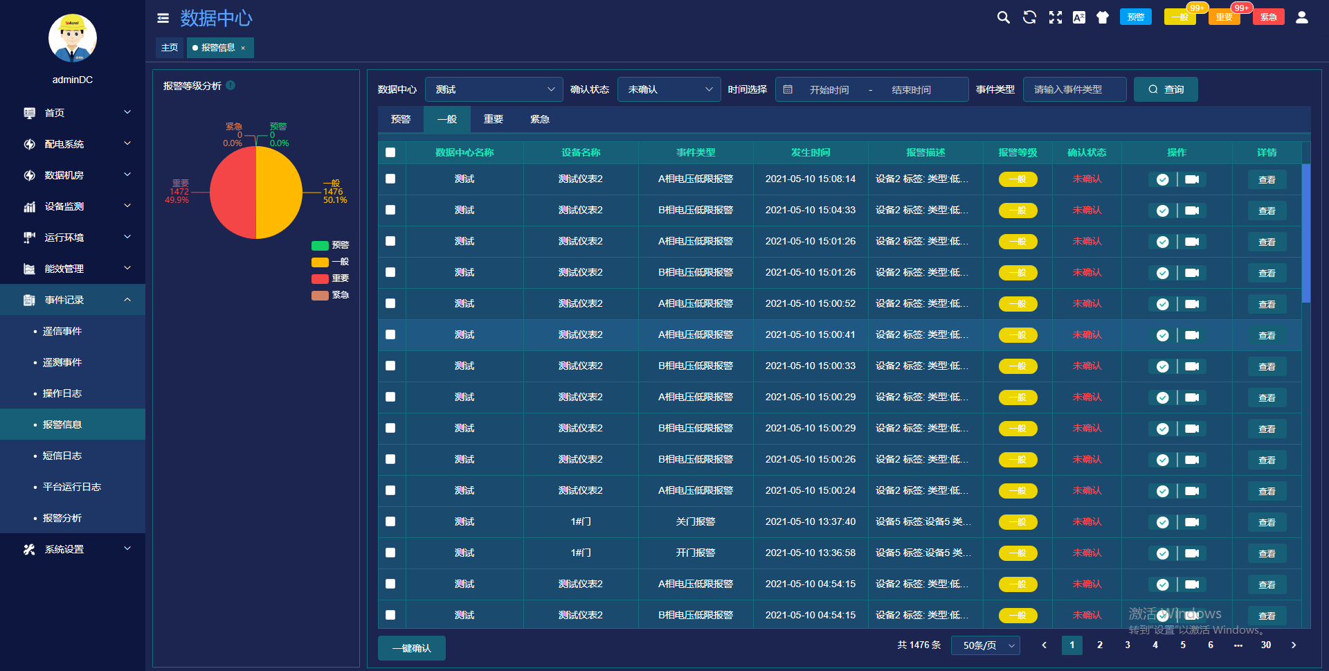 顯示當(dāng)前數(shù)據(jù)中心下各報(bào)警的確認(rèn)狀態(tài),幫助用戶確認(rèn)當(dāng)前數(shù)據(jù)中心的運(yùn)行狀態(tài)。提醒用戶有哪些存在的安全隱患。