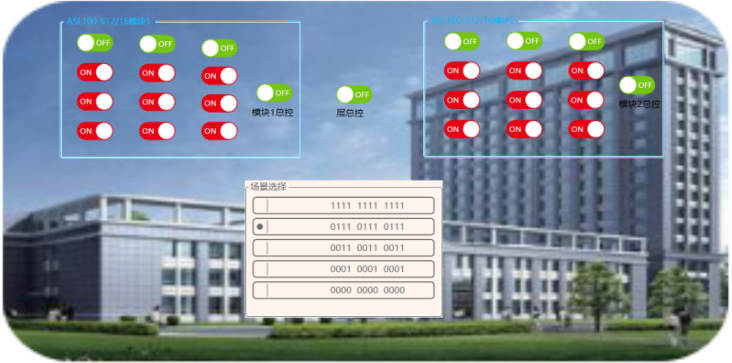可以通過電腦或者觸控終端控制一棟樓、某一層或某個區域所有照明燈具開關。可以對單個照明回路實現開關控制,還可對每個模塊、箱子、樓層、自定義分區實現總控。現場受控回路的開關狀態會實時反饋。