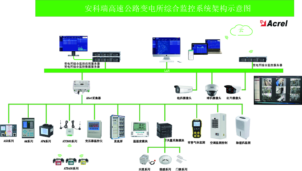 Acrel-2000E配電室綜合監(jiān)控系統(tǒng),可實現(xiàn)開關(guān)柜運行監(jiān)控、高壓開關(guān)柜帶電顯示、母線及電纜測溫監(jiān)測、環(huán)境溫濕度監(jiān)測、有害氣體監(jiān)測、安防監(jiān)控,可對燈光、風(fēng)機、除濕機、空調(diào)控制等設(shè)備進(jìn)行聯(lián)動控制。實現(xiàn)動力環(huán)境各數(shù)據(jù)的檢測與設(shè)備控制,優(yōu)化動力環(huán)境,避免運行環(huán)境的失控導(dǎo)致配電設(shè)備運行故障,保證維護(hù)人員安全,延長設(shè)備使用壽命,實現(xiàn)配電動力環(huán)境的分布式遠(yuǎn)程管理。